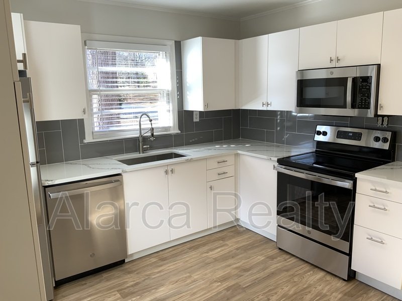 3BR/1BA ranch in West Charlotte’s Westerly Hills community, minutes from Uptown, the airport, I-85, and I-77, with a CATS bus stop just steps away. All electric, this property has been updated with modern finishes including white soft-close cabinets, quartz countertops, tile backsplash, deep stainless steel sink, commercial-grade faucet, and stainless steel appliances. Bathroom features subway tile surround and dual-sink quartz vanity. Washer/dryer hookups included.